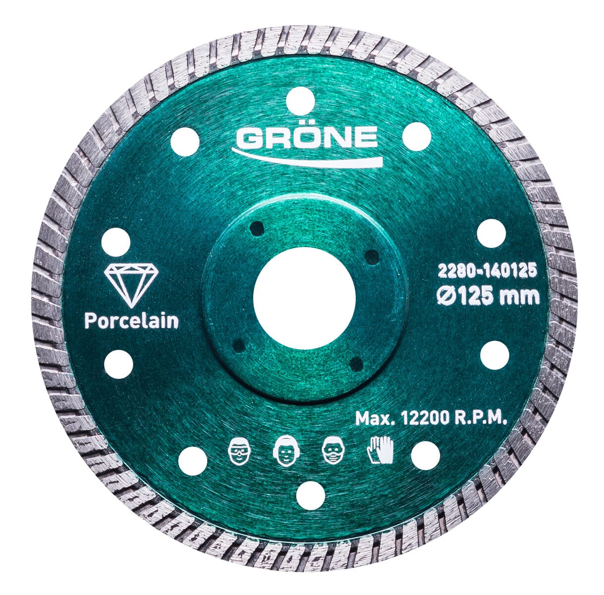 Den solide stålkjernen kombinert med diamantbelegg av høy kvalitet gir god levetid og stabil kutting. Kjølehull i skiven reduserer varmeutvikling under arbeid.