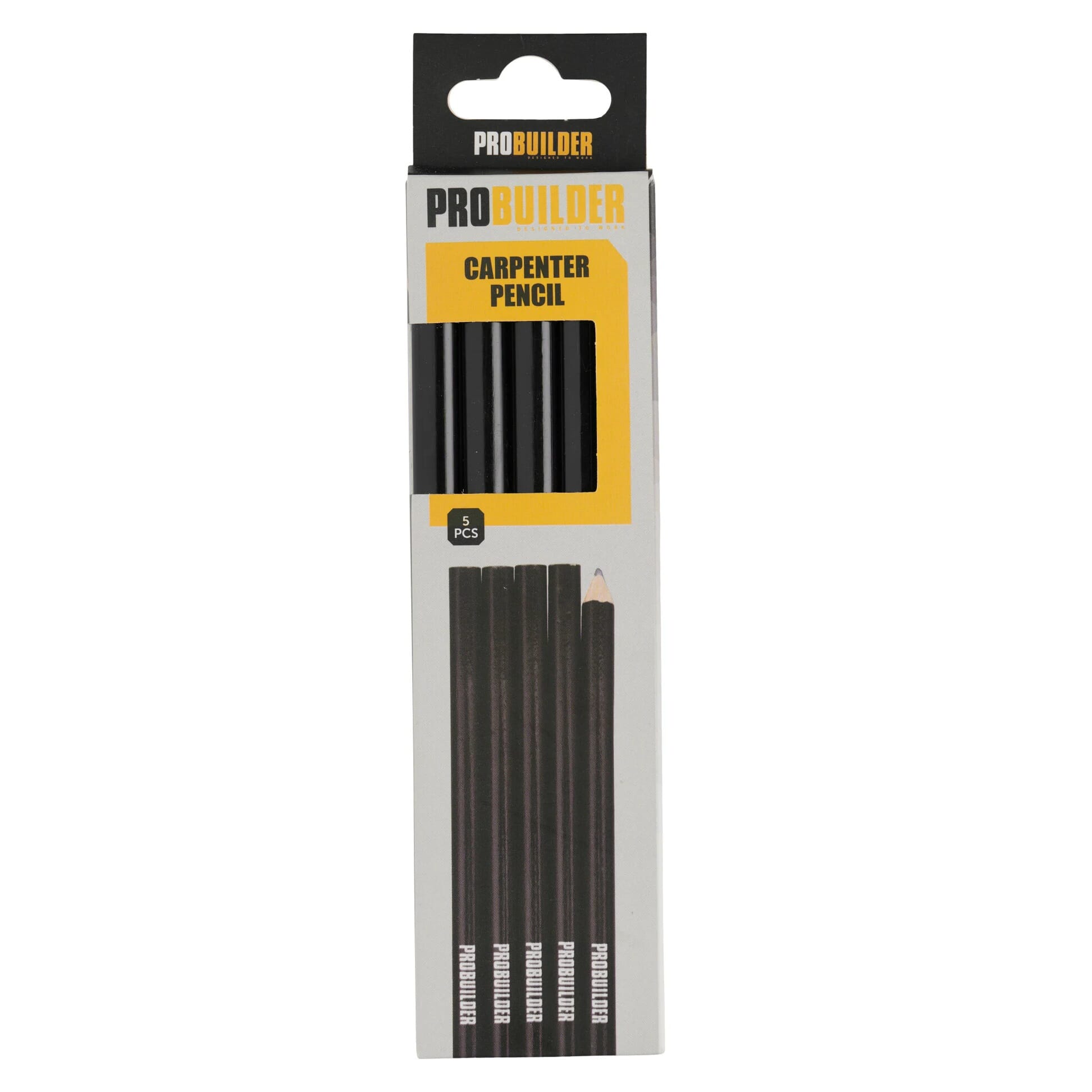 Praktiske tømmerblyanter, egnet for merking på tre, gips, betong og andre byggematerialer. Leveres i pakke med 5 stk, ideelt for daglig bruk på byggeplass og i verksted.
