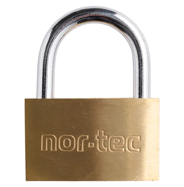 Klassisk og robust hengelås med massivt messinghus og herdet stålbøyle, utviklet for sikker låsing av porter, boder, skap og annet utstyr.