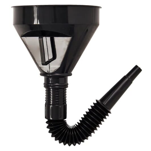 Praktisk kombitrakt for enkel og kontrollert påfylling av væsker. Leveres med fleksibel slange, sil og kant som hindrer søl, noe som gjør den godt egnet til bruk på kjøretøy og maskiner.