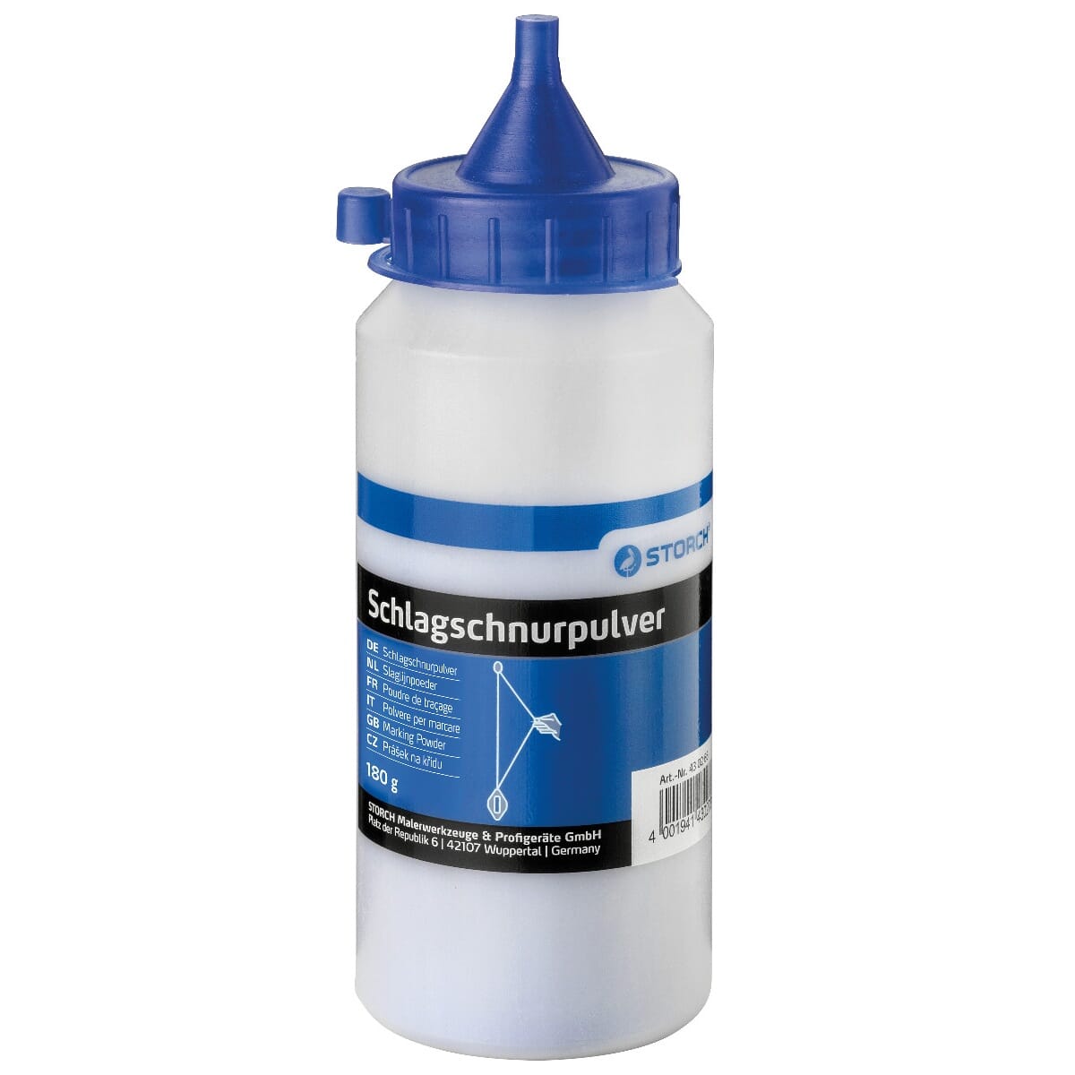 Kritt for snorslå, beregnet for markering av tydelige linjer på lyse underlag. Smal doseringstut gjør påfylling av snorslåboks ren og enkel.