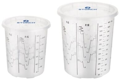MalingsblandebegerMed måleskalaer fra 2:1 til 7:1 samt 10:1, og lokk for lukking og oppbevaring. Pakke med 10 beger og lokk.