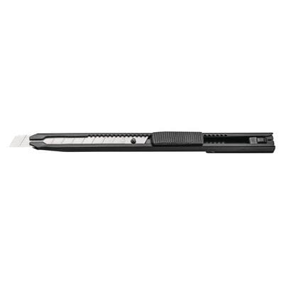 Kompakt og hendig kniv med aluminiumshåndtak. Utstyrt med automatisk bladlås og metallføring for stabil og presis skjæring.