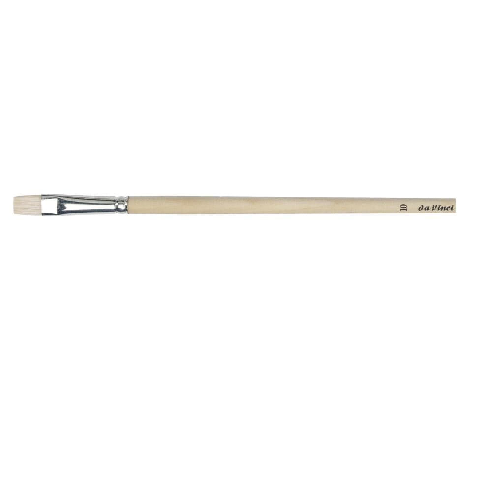 Allsidig pensel med flat bust i naturbust (svinebust), utviklet for maling på større flater og grovere teknikker. Penselen gir god fargeopptak og jevn fordeling, og egner seg godt til både hobby og mer krevende maleoppgaver.