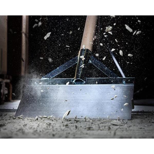 Robust gulvskrape med stålblad og kraftig treskaft, utviklet for effektiv fjerning av gamle materialer fra gulvflater. Ideell til demontering og opprydding av belegg som linoleum, tepper samt rester av flislim, puss og sement.