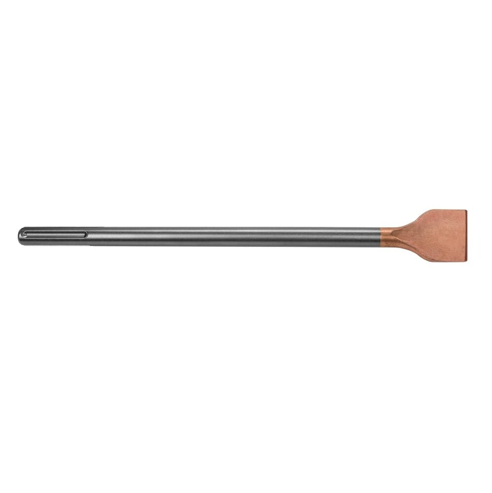 Kraftig bred flatmeisel for effektiv fjerning av materiale ved tunge meislearbeider. Egnet til oppbryting, avskalling og grovarbeid i betong, tegl og stein.