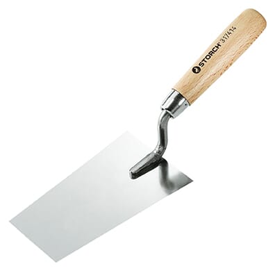 Profesjonell murskje i Berner-form, produsert i rustfritt stål. Egnet for presist puss- og murarbeid.