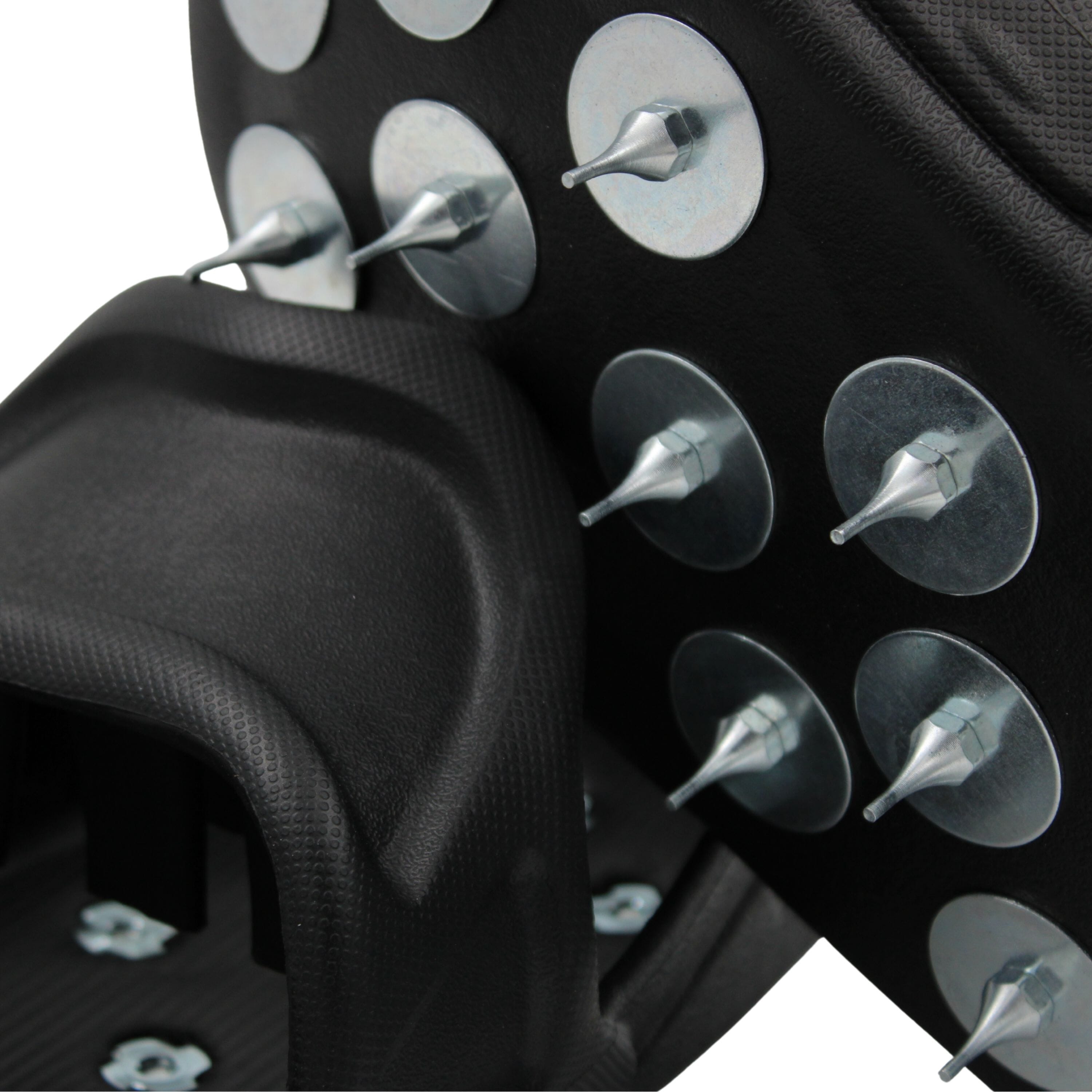 Praktiske piggsko for arbeid med epoxy, selvutjevnende masser og andre flytende gulvprodukter. Piggskoene gjør det mulig å gå på våte masser uten å etterlate merker og bidrar samtidig til å slippe ut luftbobler i overflaten.