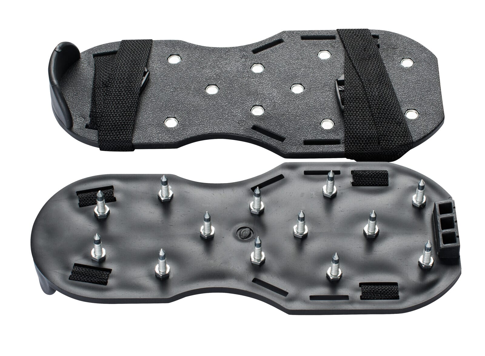 Piggskoene er universelle og passer de fleste skostørrelser. De festes med to justerbare stropper, og hælstøtten gjør det enkelt å tilpasse dem til skoene.