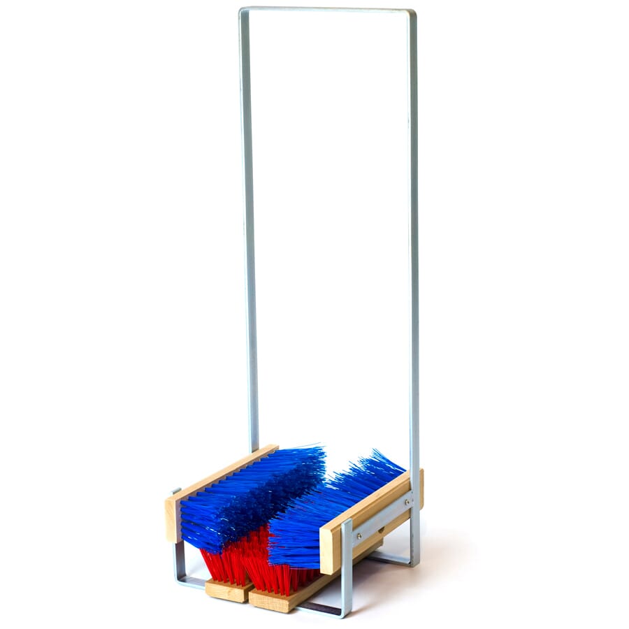 Kraftig og slitesterk skorenser for grov rengjøring av arbeidssko og støvler. Leveres med galvanisert stålstativ og 4 kraftige børster i propenplast med stiv bust, som effektivt fjerner jord, leire, grus og snø.