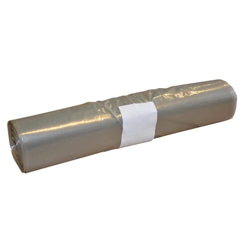 Slitesterke søppelsekker med kapasitet på 125 liter, utstyrt med knytefunksjon for enkel lukking og håndtering. Egnet for avfallshåndtering på byggeplass, i industri og ved opprydding.