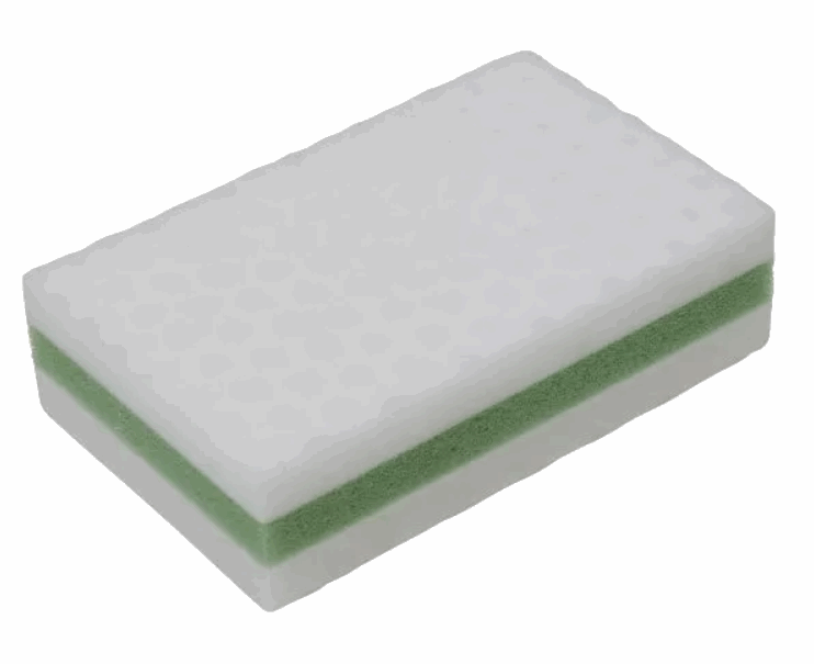 Green Clean Supersvamp er en praktisk flekk- og smusssvamp med mange bruksområder. Fjerner flekker av te, kaffe og kalkrender, fingeravtrykk m.m. på de fleste overflater.