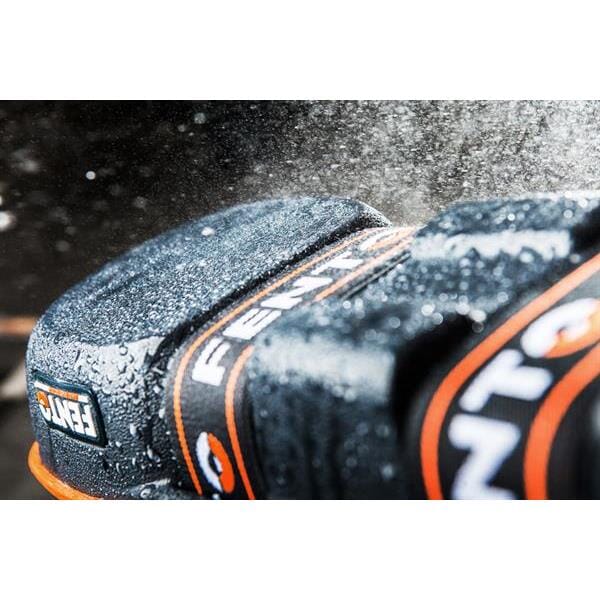 Knebeskytteren har et vanntett ytre skall og en bred utforming som gir høy stabilitet i arbeidsstillingen. Brede, elastiske stropper med kraftig borrelås festes rundt leggen, noe som gir god komfort, god bevegelighet og redusert trykk bak kneet. Det pustende innlegget er utskiftbart og bidrar til økt komfort ved langvarig bruk.